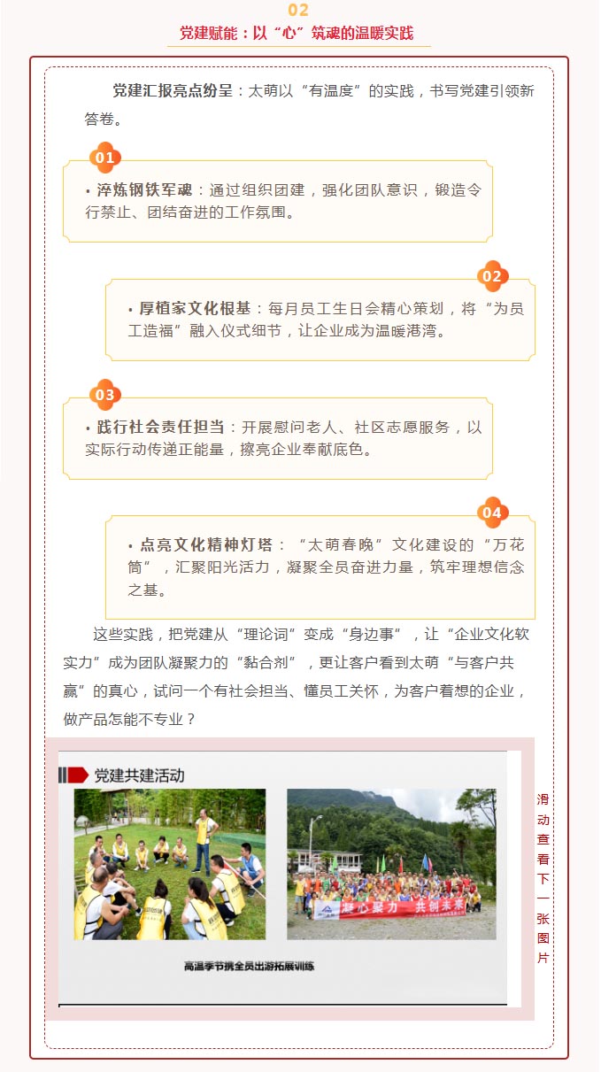 【概要描述】當(dāng)六月的熱情與企業(yè)發(fā)展的熱忱相遇,四川太萌迎來一場(chǎng)意義非凡的交流!新都區(qū)總商會(huì)黨委委員一行蒞臨公司指導(dǎo)工作,為太萌在“像軍隊(duì)、像學(xué)校、像家庭”的企業(yè)文化滋養(yǎng)下,向著“為社會(huì)貢獻(xiàn)、為員工造福、與客戶共贏”使命奮進(jìn)的征程,注入紅色動(dòng)能。
